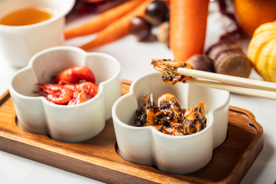 青浦本地各酒店和餐饮单位则占尽“主场”之利,充分发挥对青浦食材娴熟运用优势,既有运用淀湖河虾、练塘茭白等“青浦产大IP”的老菜新做,也尝试回归传统农家手法,各显神通来展示青浦美食的无限可能性。东方绿舟度假酒店的“一网河虾两般江湖”,以玫瑰乳腐和梅干菜两种发酵风味诠释淀山湖河虾的鲜甜,体现了厨师对本地食材的深刻理解与创新运用。联怡枇杷乐园的“枇杷园里枇杷多”,则在烹制淀湖淡水水产中巧妙运用自产枇杷露、枇杷蜜、枇杷花,把“自产故事”及食材背后的“本地骄傲”讲好、讲透。